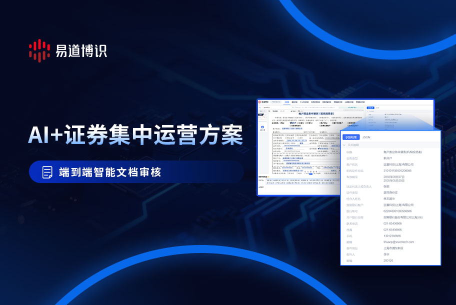 易道博識針對券商業(yè)務場景提供定制化的智能識別解決方案,滿足券商客戶在開展自營業(yè)務、財富管理、投行業(yè)務與經紀業(yè)務時涉及內容識別與數據應用需求。
